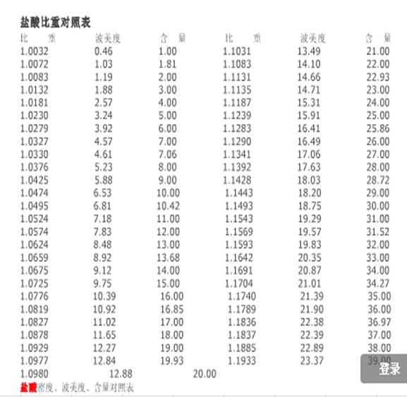 鹽酸波美度對照表